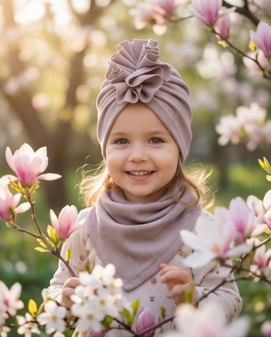 Komplet dziecięcy – turban i chusta z dzianiny bawełnianej