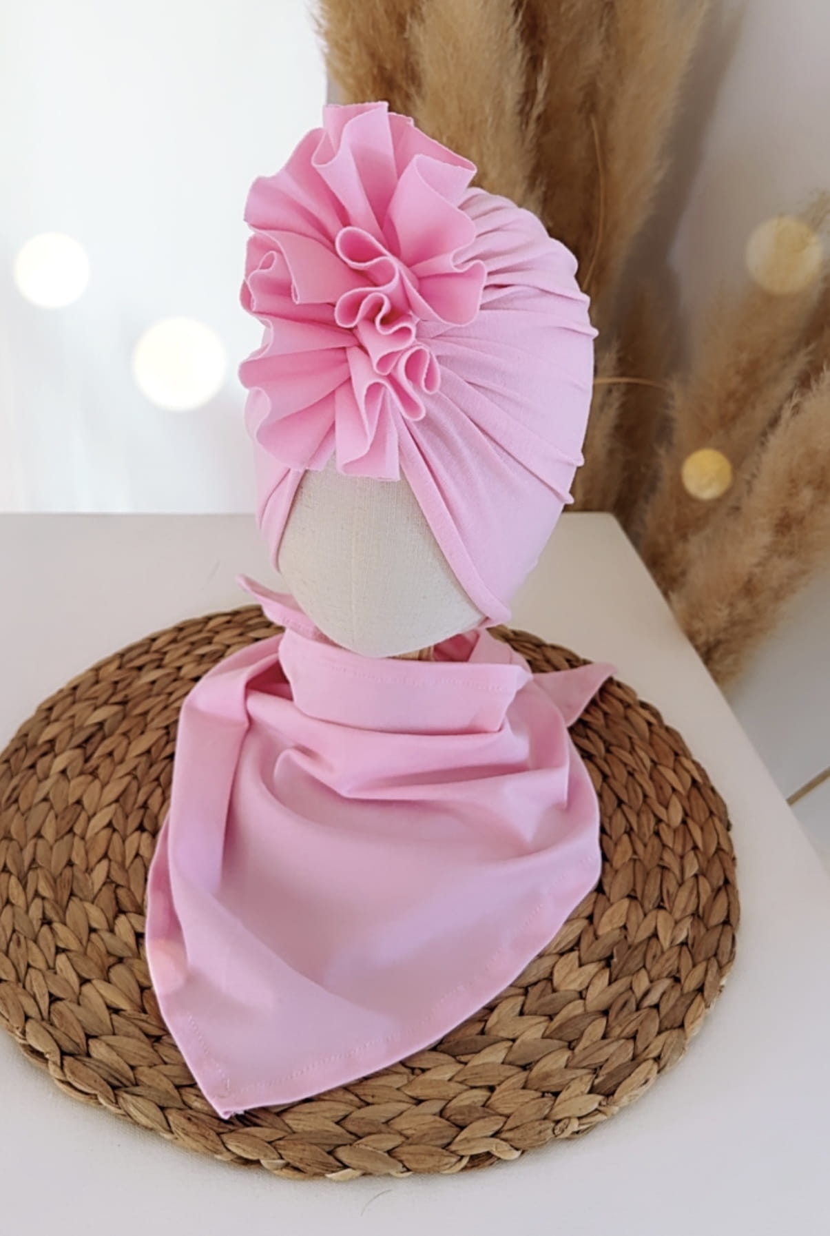 Komplet dziecięcy – turban i chusta z dzianiny bawełnianej