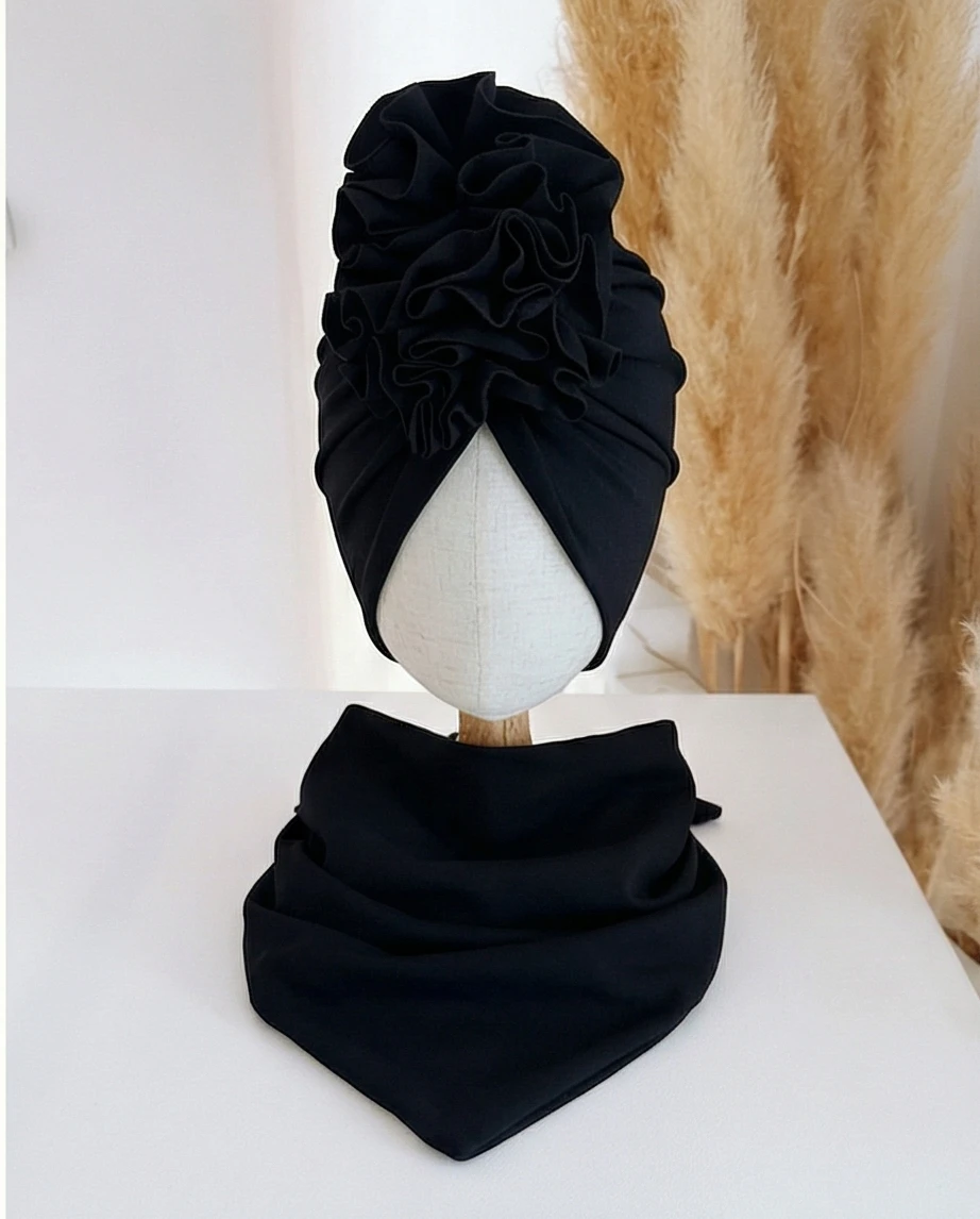 Komplet dziecięcy – turban i chusta z dzianiny bawełnianej