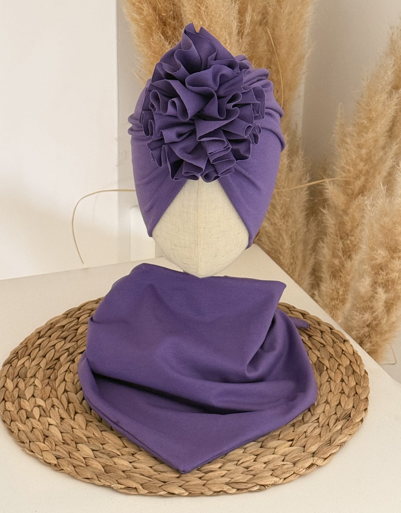 Komplet dziecięcy – turban i chusta z dzianiny bawełnianej