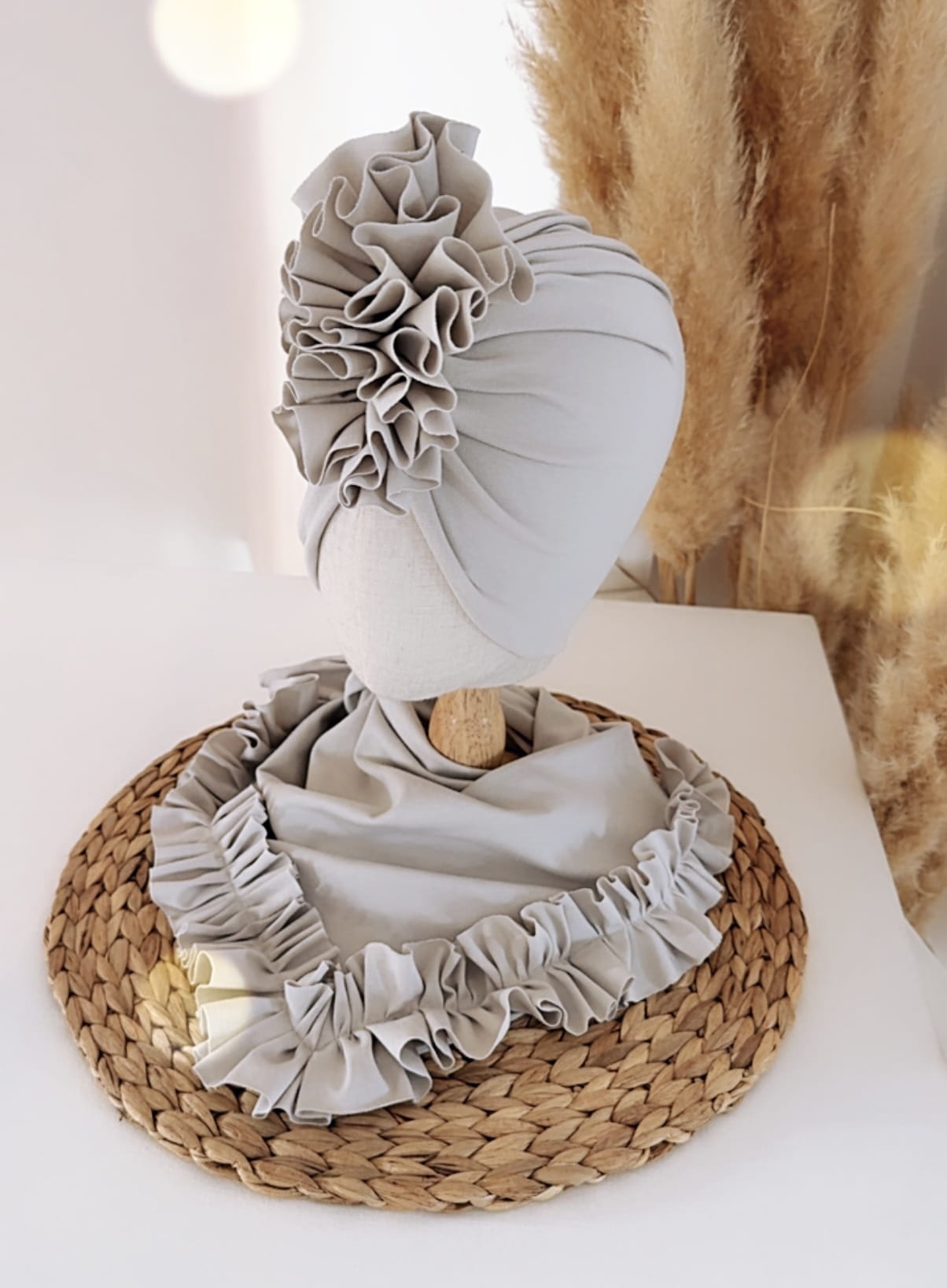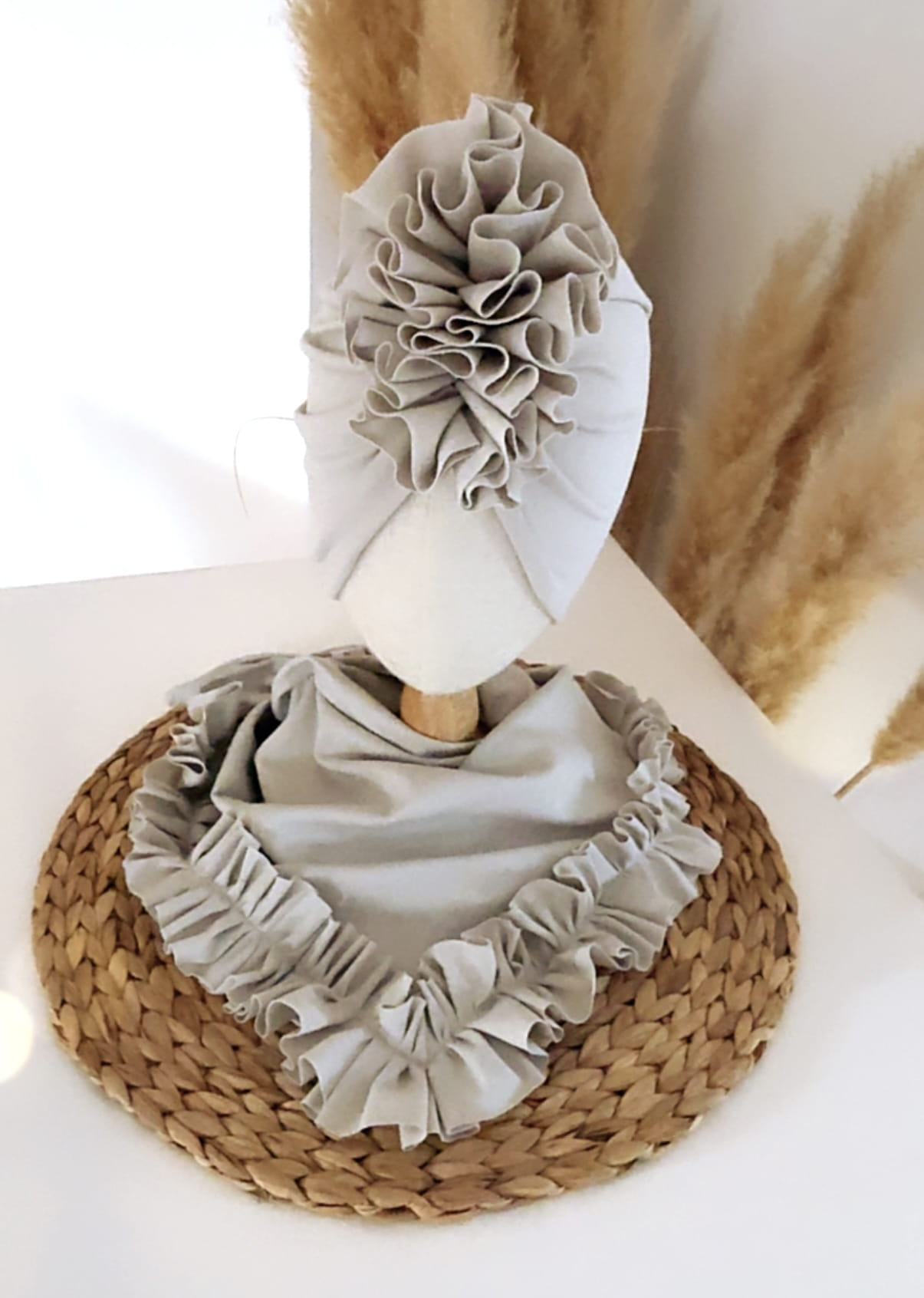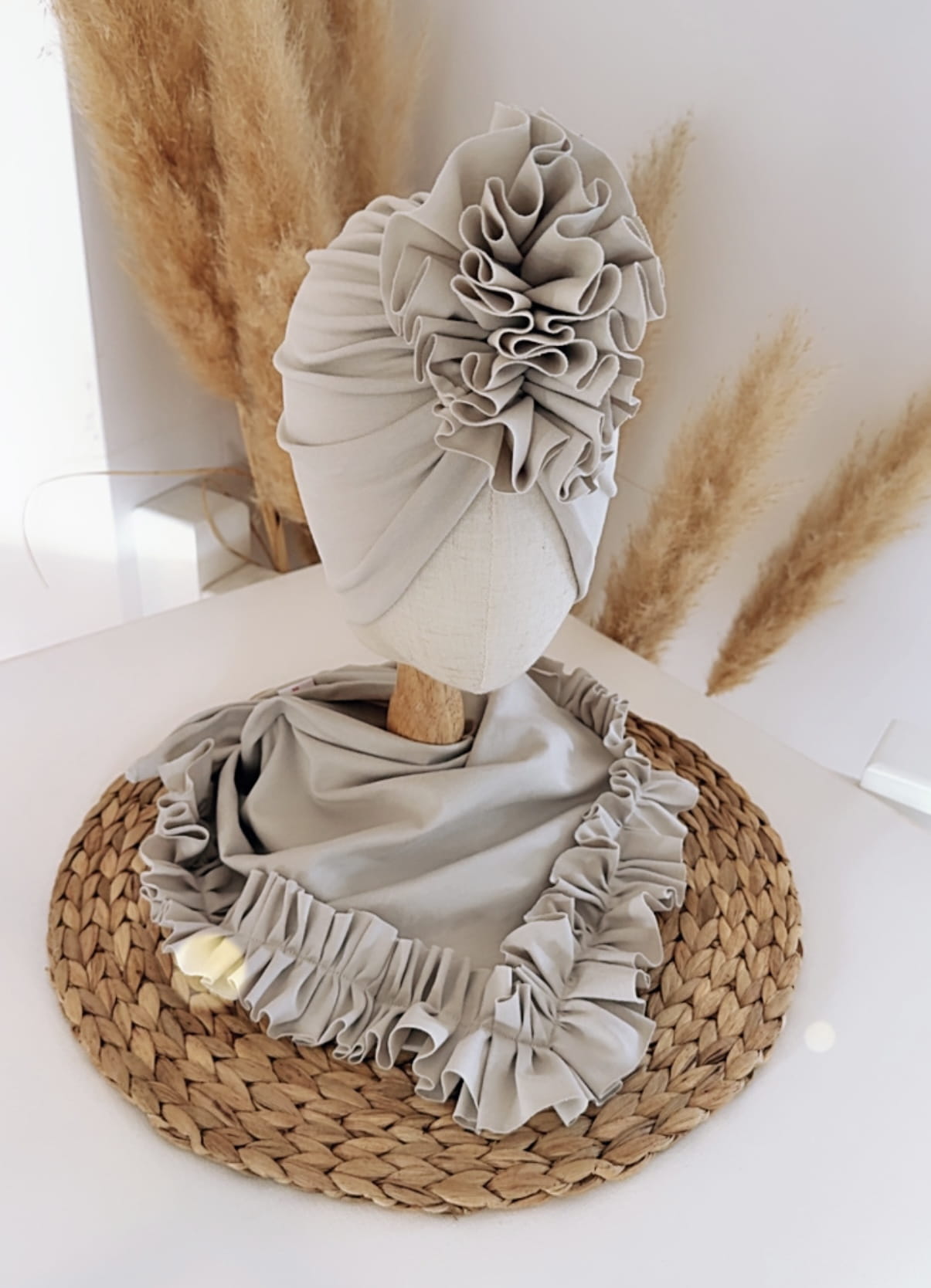 Komplet turban z falbaną i chusta z falbaną (stone)