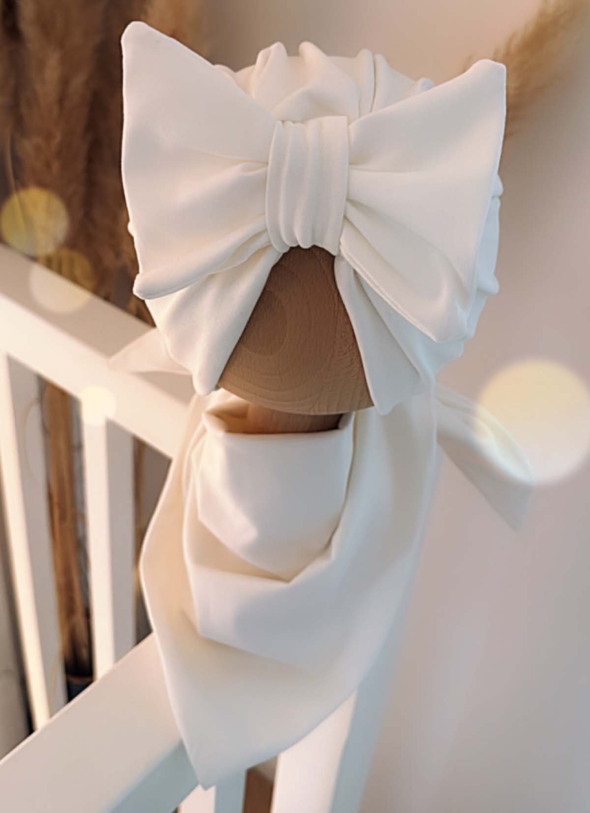 Komplet turban z kokardą i chusta (biały)