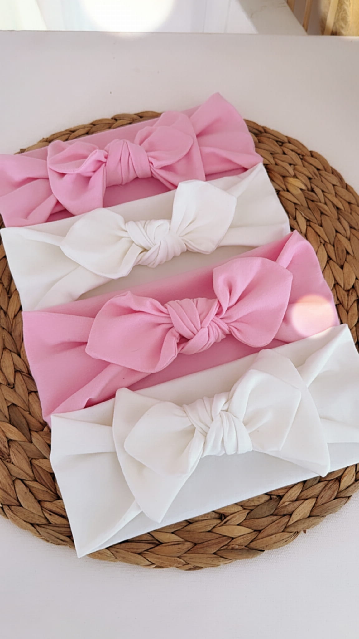 Stylowa i wygodna opaska wykonana z dzianiny bawełnianej najwyższej jakości. Dzięki zastosowaniu 98% bawełny i 2% elastanu jest miękka, przewiewna, a jednocześnie doskonale dopasowuje się do główki dziecka, nie uciskając i nie powodując dyskomfortu.